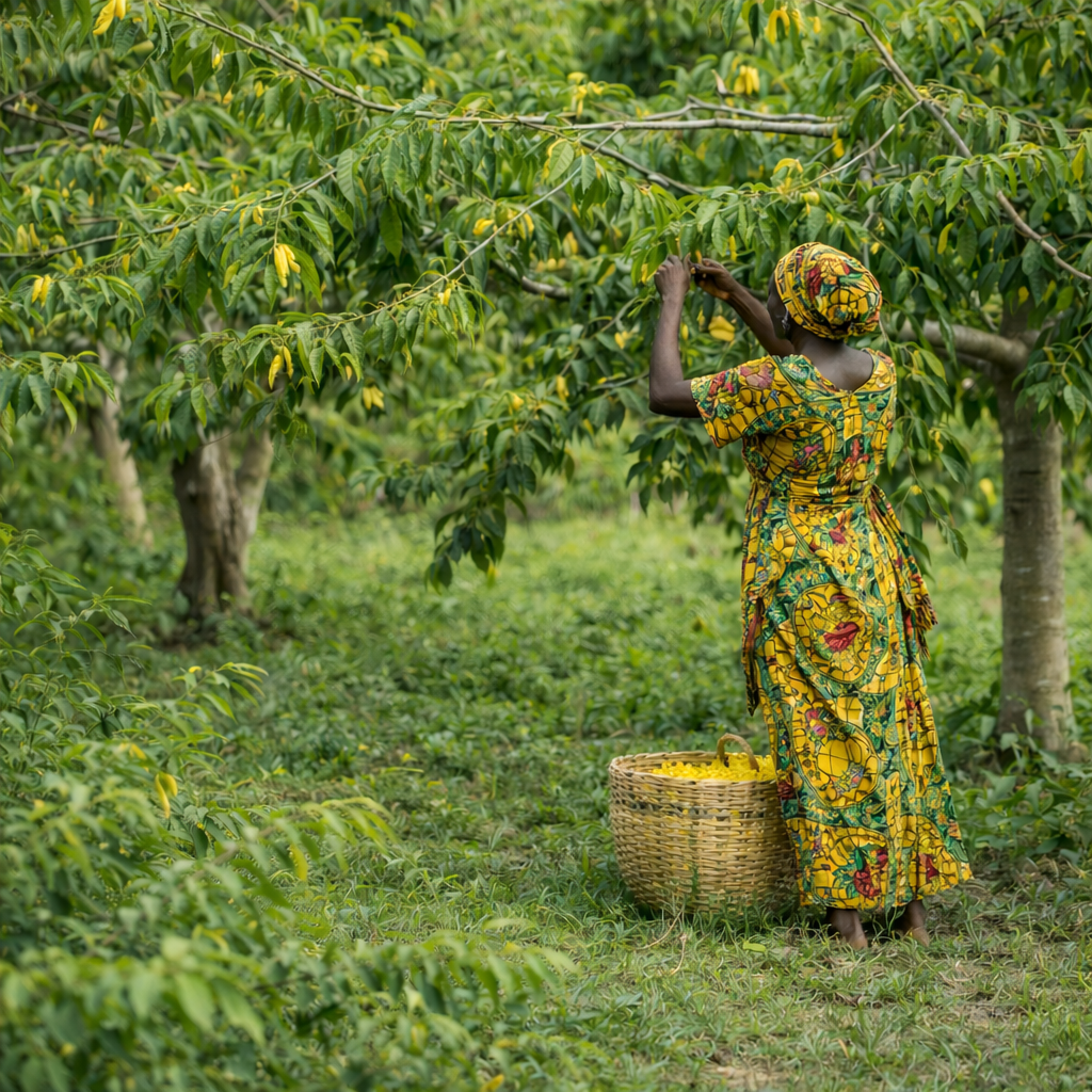 Das ätherische Öl des Ylang-Ylang wirkt stimmungsaufhellend und unterstützt dabei, wieder in einen natürlichen, ausgeglichenen Lebensrhythmus zu finden. Sein weicher, warmer Duft schafft eine sanfte, leicht erotische Atmosphäre.