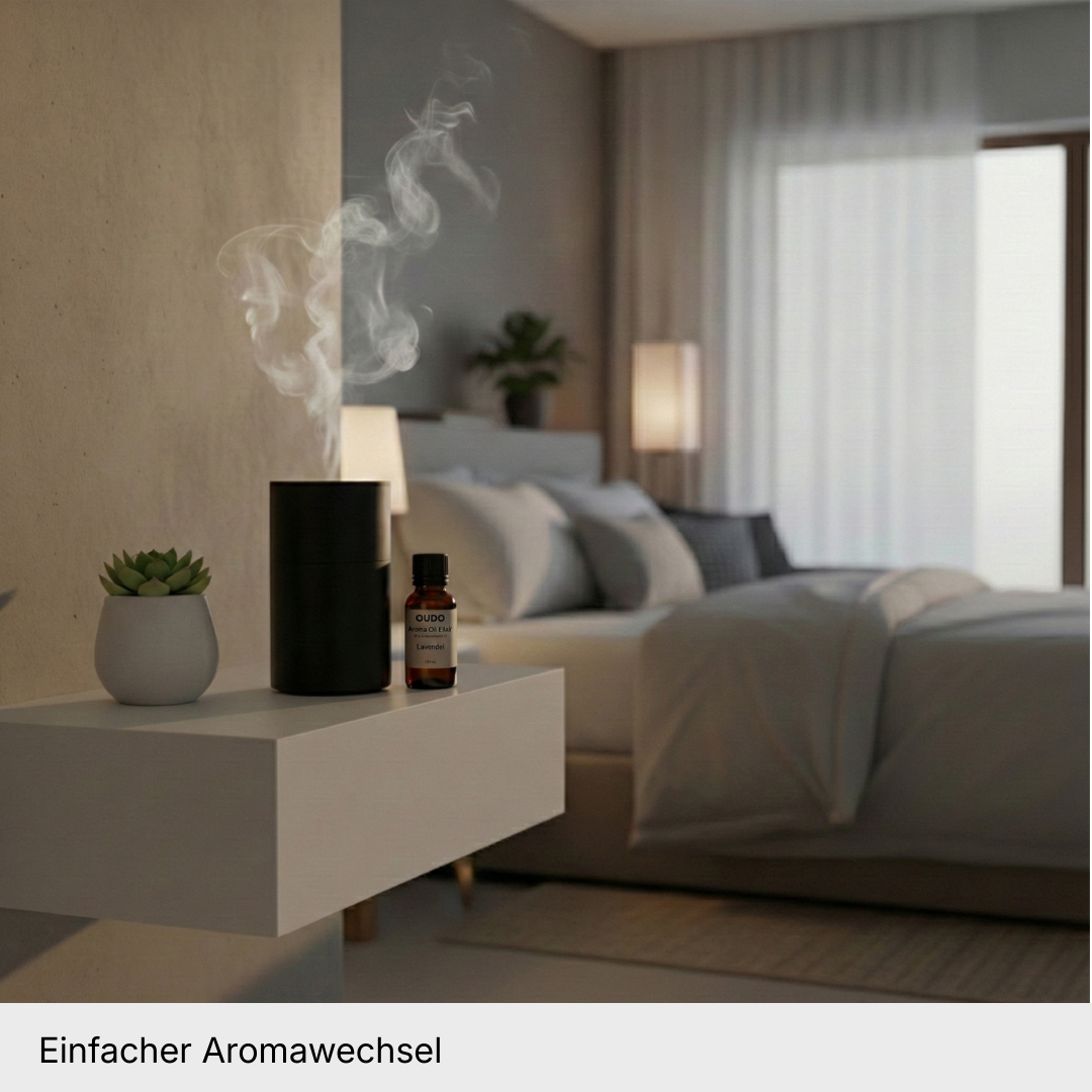 Nein. Der OUDO Diffuser arbeitet wasserlos mit moderner Kaltvernebelung und vernebelt ätherische Öle direkt. Dadurch bleibt der Duft rein, unverfälscht und besonders wirkungsvoll.