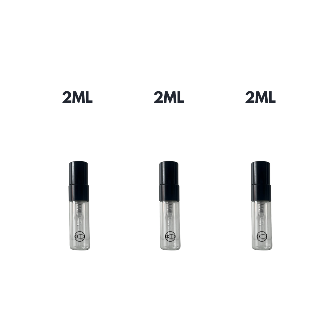 Unsere Parfumproben sind in 2 ml und 5 ml erhältlich. Sie werden in hochwertigen, beschrifteten Glasfläschchen mit Sprühkopf geliefert und enthalten eine Duftdeklaration. Gefällt dir der Duft, kannst du unser nachhaltiges Refill-System nutzen oder einen Flakon kaufen.